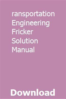 Read Transportation Engineering Fricker Solution Manual Doc online is a convenient and frugal way to read Transportation Engineering Fricker Solution Manual you love right from the comfort of your own home. Yes, there sites where you can get Doc "for free" but the ones listed below are clean from viruses and completely legal to use.